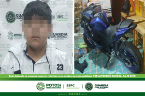 San Luis Potosí, S.L.P.- Un motociclista fue detenido por los probables delitos de daños y lesiones luego de que la Base de Operaciones Mixta Interinstitucional