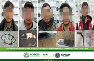 S.L.P.- Patrullajes preventivos efectuados tanto en la capital potosina como en el municipio de Soledad de Graciano Sánchez, permitieron la detención de cinco hombres, luego