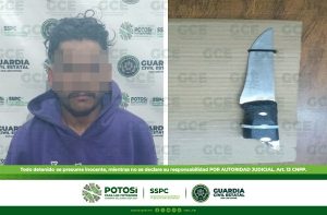 MASCULINO QUE DEAMBULABA CON UN CUCHILLO ES DETENIDO POR GUARDIA CIVIL ESTATAL