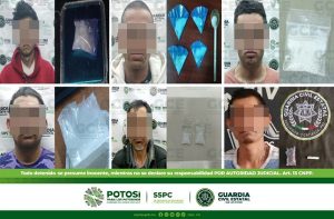 S.L.P.- Elementos de la Guardia Civil Estatal (GCE) detuvieron a 23 personas por probable posesión de estupefacientes, después de que las autoridades los sorprendieran con