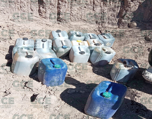 -El hallazgo fue gracias a los barridos aéreos y el despliegue terrestre, se aseguraron 17 bidones, parte de los indicios de una carpeta de investigación.
