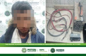 San Luis Potosí, S.L.P.- Como resultado de los trabajos operativos, desarrollados por la Guardia Civil Estatal (GCE), para inhibir delitos patrimoniales, un hombre fue detenido
