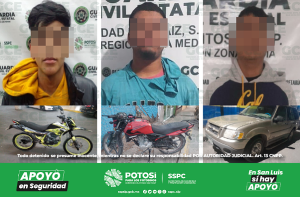 S.L.P.- En diferentes puntos de la capital potosina y en el municipio de Soledad de Graciano Sánchez, elementos de la Guardia Civil Estatal (GCE), detuvieron