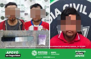 San Luis Potosí, S.L.P.- En distintas acciones, agentes de Guardia Civil Estatal (GCE) detuvieron a tres hombres, por el probable delito de daños, además de