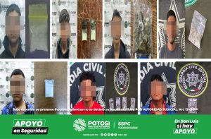 San Luis Potosí, S.L.P.- Como resultado de los recorridos de seguridad y vigilancia en la capital potosina, desarrollados por la Guardia Civil Estatal, seis hombres