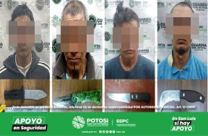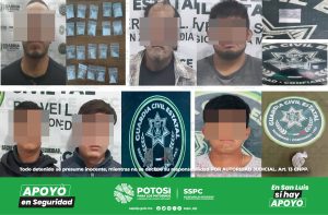 San Luis Potosí, S.L.P.- Recorridos de seguridad y vigilancia, realizados por las distintas colonias de la capital potosina, derivaron en la detención de cuatro masculinos,