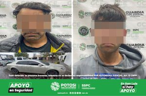San Luis Potosí, S.L.P.– En el marco de las acciones operativas y preventivas, desplegadas en el operativo Otoño-Invierno Seguro 2023, dos hombres resultaron detenidos en