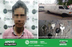 San Luis Potosí, S.L.P.- Labores de inteligencia desarrolladas por la Guardia Civil Estatal (GCE) permitieron la captura de un presunto objetivo criminal, dedicado al robo