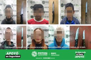 S.L.P.- Derivado de los patrullajes preventivos efectuados por la Guardia Civil Estatal (GCE), tanto en la capital potosina como en su zona conurbada, seis hombres