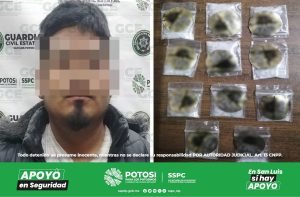 Villa de Reyes, S.L.P.- Un probable narcomenudista, vinculado a una célula criminal, fue detenido por elementos de la Guardia Civil Estatal (GCE), luego de los