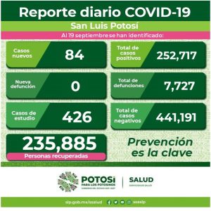En cuanto a los casos Covid-19 en el Estado, se dan a conocer 84 nuevos contagios, confirmando el Comité Estatal para la Seguridad en Salud