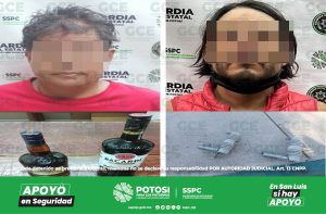 San Luis Potosí, S.L.P.- Agentes de la Guardia Civil Estatal (GCE) atendieron dos reportes ciudadanos que culminaron en la detención de dos individuos, quienes fueron