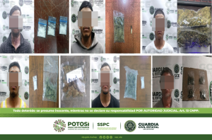San Luis Potosí, S.L.P.- Como parte de los trabajos de seguridad y prevención implementados por la Guardia Civil Estatal en la capital potosina, tres hombres
