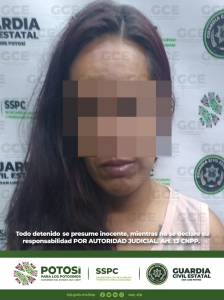 San Luis Potosí, S.L.P.- Agentes de la Guardia Civil Estatal lograron la detención de una mujer acusada de causar daños en un domicilio de la