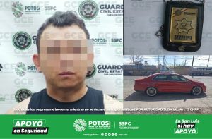 San Luis Potosí, S.L.P.- Elementos de la Guardia Civil Estatal (GCE) detuvieron a un individuo que presumiblemente se hacía pasar por un elemento activo de