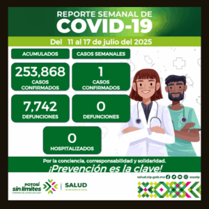 Si tienes alguna enfermedad respiratoria, usa cubrebocas. Esta semana no se reportaron decesos por Covid -19, por lo que la cifra se mantiene en 7