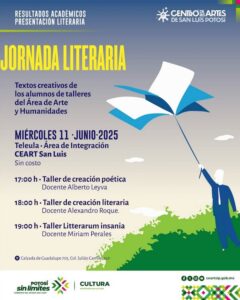 El área de Artes y Humanidades del Centro de las Artes de San Luis Potosí (Ceart) realizará la Jornada literaria “Textos creativos de los alumnos