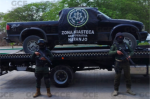 El Naranjo, S.L.P.- Tras las labores desplegadas en el operativo Huasteca Segura, elementos de la Guardia Civil Estatal (GCE), aseguraron un vehículo con objetos prohibidos