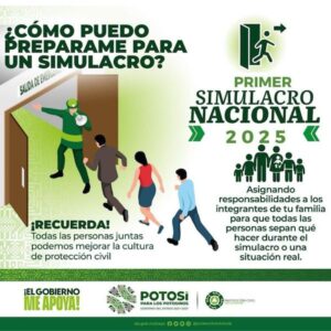 La Coordinación Estatal de Protección Civil (CEPC), reitera el llamado a las y los potosinos a participar en el Primer Simulacro Nacional el martes 29