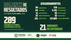 S.L.P.- Agentes de la Guardia Civil Estatal detuvieron a 25 personas, por probables delitos contra la salud, en las últimas 24 horas. Una de las