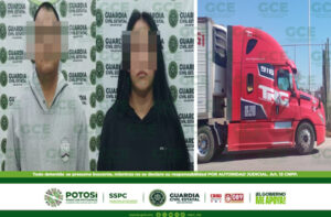 Villa de Pozos, S.L.P.- Efectivos de la Guardia Civil Estatal detuvieron a una pareja, en la colonia Santa Bárbara, por probables delitos contra servidores públicos