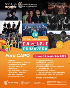 El 14 de abril, teniendo como escenario la Plaza de Aranzazú se presentan los grupos potosinos: Twinis, Alcahest Cuartet, Primate, Canto Quetzal y la Meztisound,