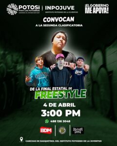 El Instituto Potosino de la Juventud (Inpojuve), invita a las y los interesados en participar en la segunda eliminatoria estatal de freestyle, este viernes 4