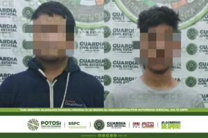 S.L.P.- Denuncias ciudadanas permitieron la oportuna reacción de la Guardia Civil Estatal (GCE), ante posibles casos de violencia familiar, en donde detuvieron a dos masculinos,