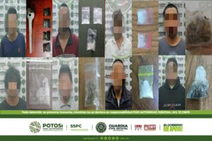 S.L.P.- La aplicación del Plan Integral de Seguridad en todo el territorio potosino, permitió la detención de 24 personas que llevaban consigo varias dosis de