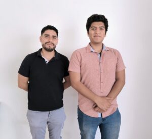 El doctor Samuel Salazar García, investigador del Laboratorio de Análisis Clínicos, y Kaled Humberto González Arreguín, estudiante de la Facultad de Ciencias Químicas (FCQ), de