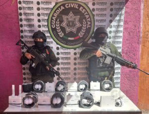 -19 cámaras fueron aseguradas con sus respectivos módems para señala de Internet. S.L.P.- Como parte de la lucha frontal contra la delincuencia, elementos de la