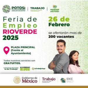La Secretaría del Trabajo y Previsión Social (STPS), en colaboración con el ayuntamiento de Rioverde, realizará una Feria de Empleo este miércoles 26 de febrero,