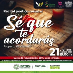 Este recital es producto de una colaboración entre el Museo Francisco Cossío y Desarrollo Integral Ixchel A.C. La Secretaría de Cultura de Gobierno del Estado
