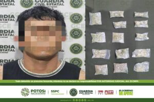 -El asegurado es posible distribuidor de droga al norte de la capital potosina. San Luis Potosí, S.L.P.- Elementos de la Guardia Civil Estatal, detuvieron a