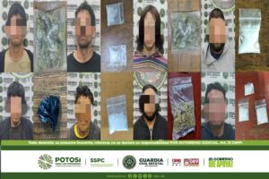 S.L.P.- Elementos de la Guardia Civil Estatal, realizaron la detención de 27 personas en distintos operativos efectuados en todo el territorio potosino, con la finalidad