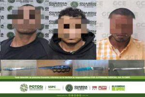 San Luis Potosí, S.L.P.- Durante los patrullajes preventivos efectuados por policías de la Guardia Civil Estatal (GCE), en la capital potosina, cuatro hombres resultaron detenidos