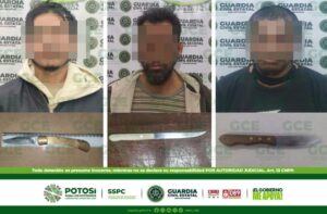 S.L.P.- Agentes de la Guardia Civil Estatal (GCE) detuvieron en diferentes acciones a tres personas después de que fueran sorprendidos en presunta posesión de armas