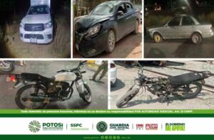 S.L.P.- Agentes de la Guardia Civil Estatal, recuperaron cinco vehículos con reporte de robo tras las distintas acciones preventivas y de seguridad que se realizan
