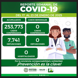 Del 17 al 23 de enero del 2025 en San Luis Potosí no se registraron nuevos casos por Covid-19. Se recomienda no bajar medidas de
