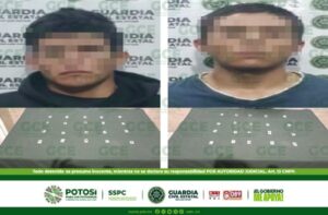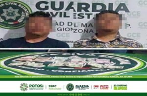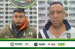 S.L.P.- Denuncias ciudadanas, atendidas en la Línea de Emergencias 9-1-1, permitieron que oficiales de la Guardia Civil Estatal (GCE) detuvieron a dos hombres, por el