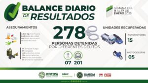 S.L.P.- Operativos de la Guardia Civil Estatal derivaron en la detención de 14 personas, por probables delitos contra la salud, en su modalidad de posesión