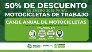 El 50 por ciento de descuento, aplica para motocicletas con valor de hasta 30 mil pesos y para personas adultas mayores El Gobierno del Estado, reitera