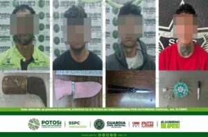 San Luis Potosí, S.L.P.- Agentes de la Guardia Civil Estatal (GCE) detuvieron a cuatro personas, por el probable delito de violencia familiar, derivado de la