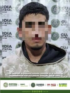 San Luis Potosí, S.L.P.- Acciones preventivas de la Guardia Civil Estatal en toda la zona metropolitana, derivaron en la detención de un hombre acusado de