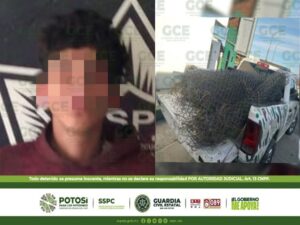 San Luis Potosí, S.L.P.- Patrullajes preventivos y disuasivos, efectuados por la Guardia Civil Estatal (GCE) derivaron en la detención de un hombre, por el probable