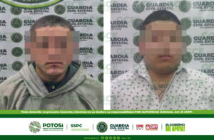 San Luis Potosí S.L.P.- Agentes de la Guardia Civil Estatal detuvieron a dos hombres señalados de allanamiento. Al atender reporte de auxilio en el Fraccionamiento
