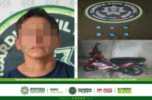 San Luis Potosí, S.L.P.- Dispositivos de seguridad y vigilancia, efectuados por elementos de Guardia Civil Estatal (GCE) permitieron la detención de un hombre a quien