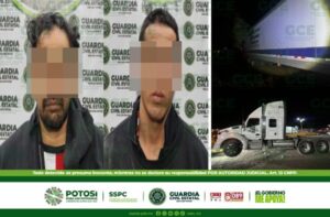 PRESUNTOS SON CAPTURADOS POR GUARDIA CIVIL ESTATAL, TRAS ASEGURARLES UNIDAD DE CARGA ROBADA