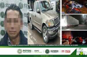San Luis Potosí, S.L.P.- Como resultado de la respuesta a un auxilio ciudadano, atendido por la División Caminos de la Guardia Civil Estatal (GCE), un