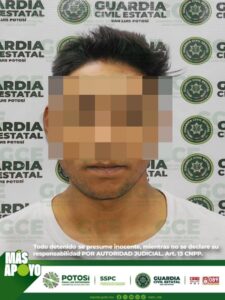 Villa de Pozos, S.L.P.- Una denuncia ciudadana, atendida por agentes de la Guardia Civil Estatal (GCE), derivó en la detención de un hombre, señalado del